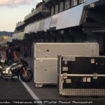 Les box n’étaient pas pour autant sans activité et nous avons assisté aux préparatifs du test MotoGP qui aura lieu demain et mercredi: nouvelles motos, nouvelles combinaisons, ajustage et fonctionnement des commandes, etc…