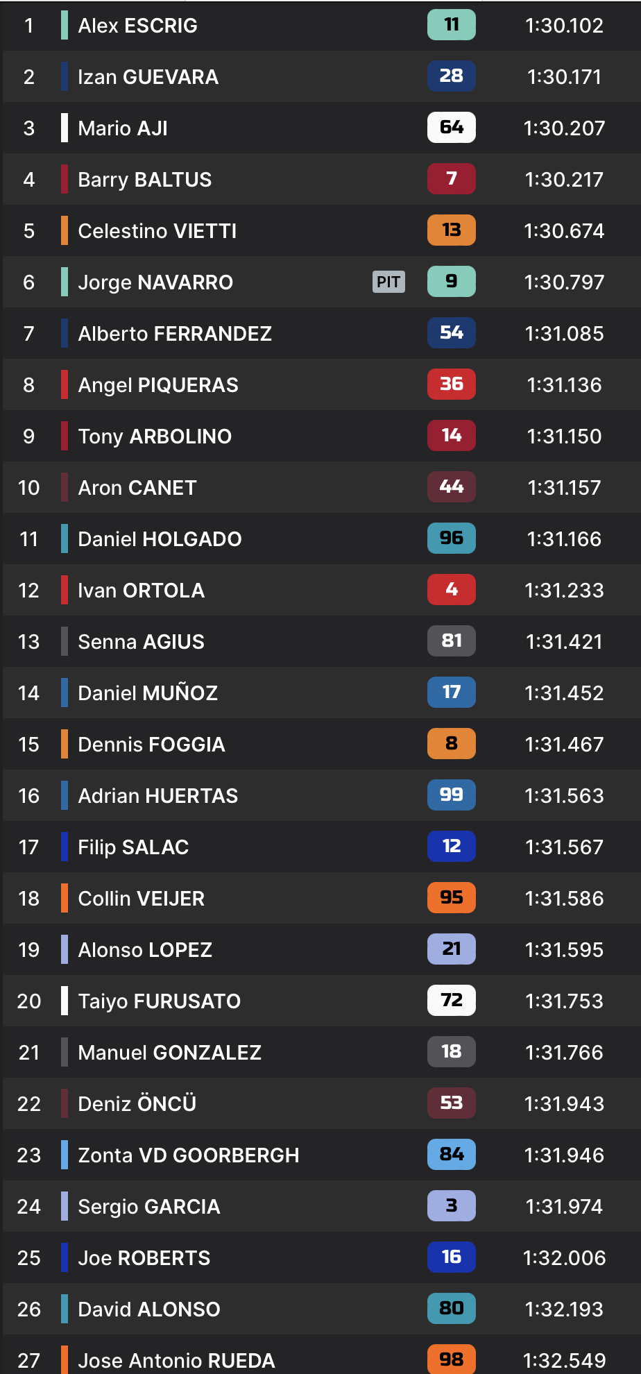 À ce jeu-là, Barry Baltus s’est montré particulièrement fort en début de séance, posant les premières références. Izan Guevara a ensuite pris le relais, et tournait en 1:30.171 à mi-séance.