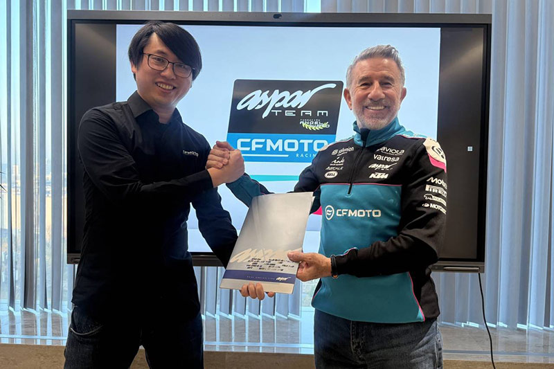 « Après deux années de travail en commun, nous avons construit une relation dans laquelle nous nous sentons comme une famille. Nous avons avancé dans la même direction, aussi bien en Championnat du Monde qu’en dehors de la compétition, à travers différents projets comme la formation de jeunes pilotes chinois et le développement de nouvelles motos. Ce partenariat a été jusqu’à présent un grand succès pour CFMOTO et l’Aspar Team. J’ai hâte de découvrir ce que l’avenir nous réserve. »
