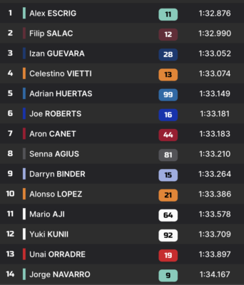 Q2 | 1’33.434 Aron Canet | 1’32.341 Diogo Moreira |
