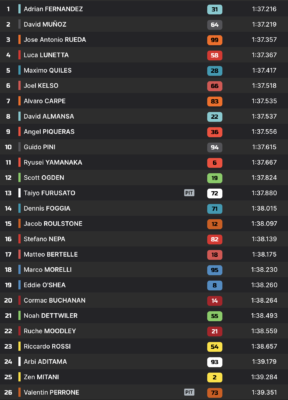 Moto3 Indonésie (Mandalika) – Le classement de la FP2 :