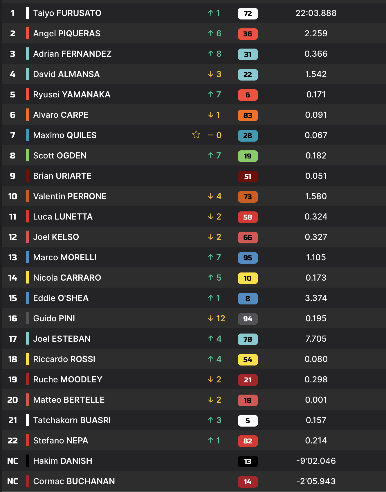 | Course | Alonso, Furusato, Rueda (Voir ici) | Furusato, Piqueras, Fernandez |