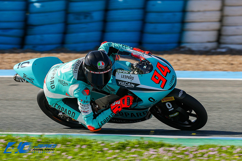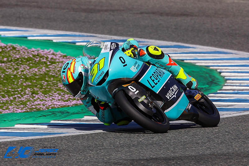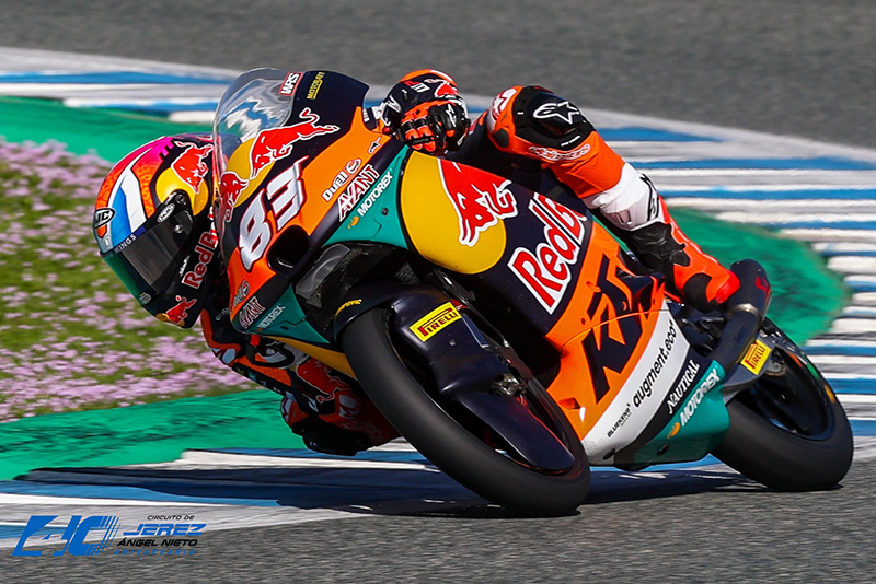 La catégorie Moto3 a donc conclu ses essais officiels sur le circuit Jerez-Ángel Nieto dans un cadre radicalement différent de celui de la veille. Après un samedi ensoleillé, mais un vent et des températures basses qui ont compliqué les réglages, un soleil radieux et une température ambiante bien plus clémente (jusqu’à 17°) ont permis aux pilotes de rouler confortablement aujourd’hui, enchaînant les tours à un rythme soutenu et réalisant des chronos proches des records de la catégorie.