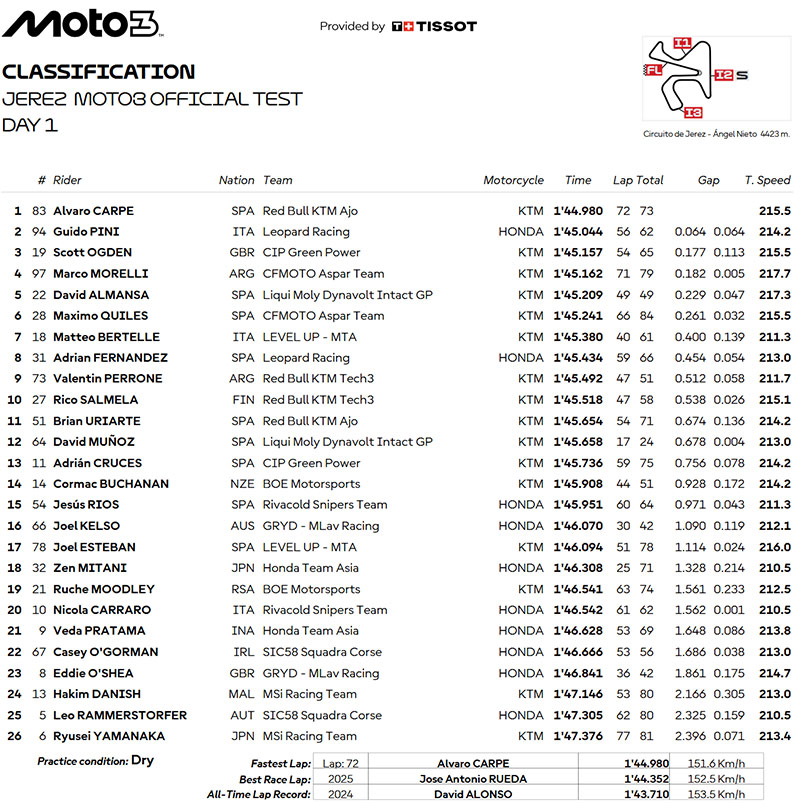 Moto3 Test Jerez les
