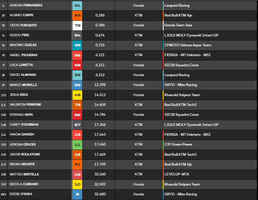 | FP1 | 1’38.919 Daniel Holgado | 1’38.357 Alvaro Carpe |