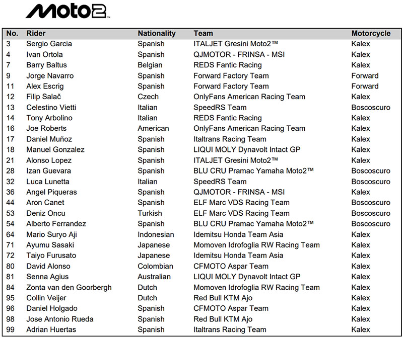 Les Listes d’Engagement provisoires des pilotes pour le Championnat du Monde FIM MotoGP 2026 sont maintenant publiées.