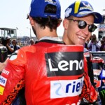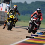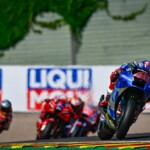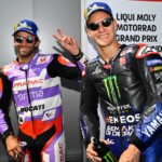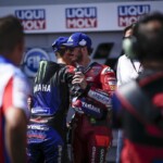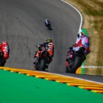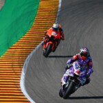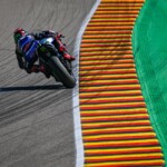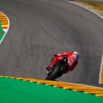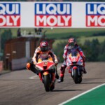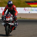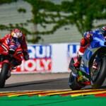 A l’issue des deux premières journées du Grand Prix d’Allemagne, Francesco Bagnaia arrivé en tête à l’issue des essais libres, aura de nouveau dicté sa loi durant ces qualifications, sans toutefois battre son record du matin. Auteur d’un tour en 1’19.931, l’Italien inscrivait ainsi sa troisième pole en l’espace de cinq courses. Cela dit, il n’aura pas manqué grand-chose à Fabio Quartararo car seulement 76 millièmes le séparaient de son rival. Et deux Français figureraient en première ligne puisque le troisième chrono revenait à un certain Johann Zarco, également pointé à moins d’un dixième du pilote Ducati. Les photos mises à disposition de la presse par le site officiel MotoGP.com nous permettent de revenir sur les deux journées d’essais du Grand Prix d’Allemagne !