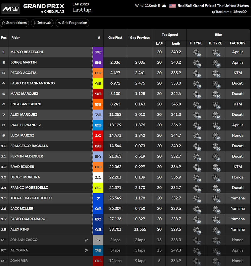Résultats du Grand Prix des États-Unis MotoGP 2026 à Austin :