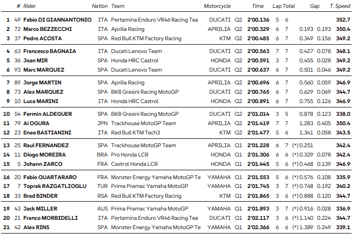Résultats des qualifications du Grand Prix des États-Unis MotoGP 2026 :