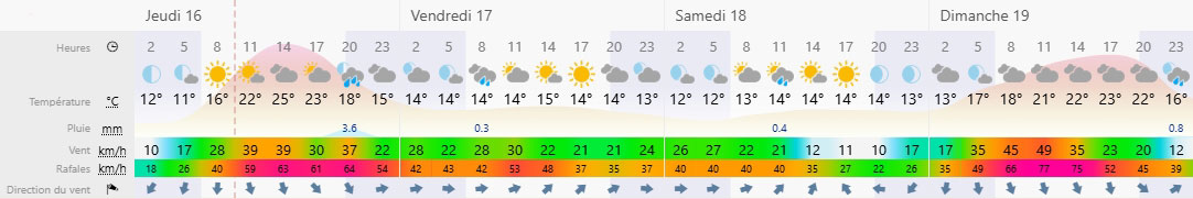 gauche, peu de virages à droite, et une température souvent