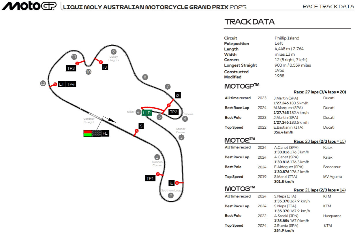 Pour écrire ce 19e chapitre de la saison MotoGP 2025, il faudra parcourir 13 fois le tracé de 4448 mètres lors du Sprint de samedi et effectuer 27 boucles le dimanche.