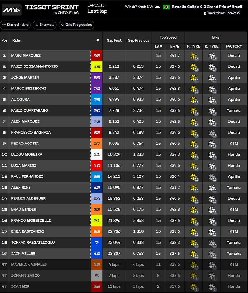 « On sait que sur les longs runs on est un petit peu plus en difficulté. En tout cas j’ai pu profiter de ces premiers tours, même de la course. Je pense que le rythme était assez bon avec notre moto, on a pris des informations pour demain », a-t-il déclaré au micro de Canal+. « Je ne vais pas dire que c’est un avantage mais j’ai réussi à m’adapter très rapidement au circuit, surtout dans des conditions où on était avec les slicks, donc assez content et je pense que demain on peut faire une belle course, on peut s’amuser, ça sera long mais on va voir quels pneus utiliser. »