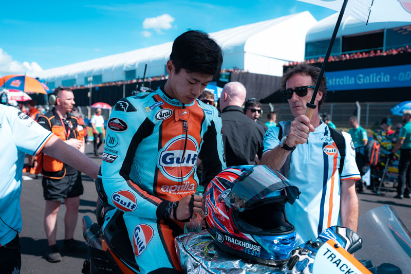 Après 4 tours passés dans le sillage de Johann Zarco, le pilote Trackhouse effectuait une belle remontée, récupérant la 8e place au tour 6, la 7e au tour 11 après la chute de Joan Mir, puis la 6e à neuf tours de l’arrivée en doublant Pedro Acosta.