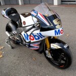 Le vendeur dit qu’il a acheté cette moto directement à l’équipe JiR après que le moteur ait été rafraîchi et rodé au banc. Elle est apparemment prête à courir, bien qu’elle ait été exposée depuis qu’elle ait été achetée. Elle porte la livrée « Mobil 1 » de la manche du Mans 2012 et porte la signature de Johann Zarco sur le cache-filtre à air.