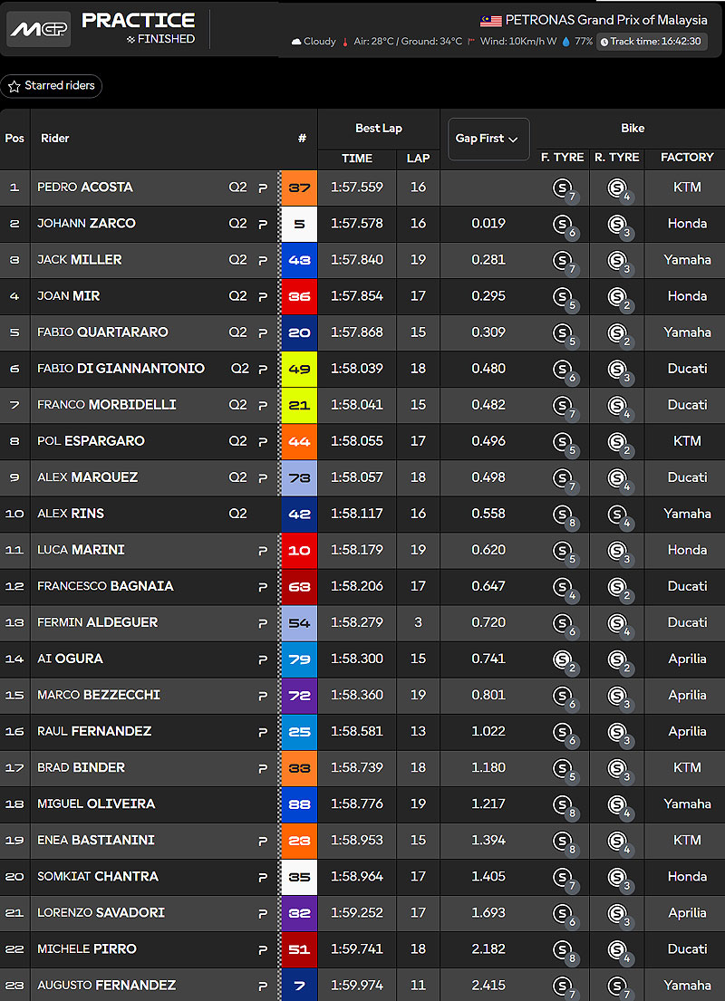 Résultat de la Practice au Grand Prix de Malaisie MotoGP 2025 :