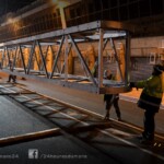 Livrée en quatre éléments, la structure a été assemblée sur place, en soirée. Conçu par l’architecte Christophe Bailleux, qui avait déjà réalisé la tour Michelin, le portique a été construit par la société CMG de Saint-Calais (Sarthe), spécialisée dans la construction métallique. Pour rappel, la ligne d’arrivée reste inchangée.