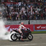 « J’ai aussi pris beaucoup de plaisir à tourner avec la CBR250RR sur le tracé de Sentul. La foule présente dans les tribunes était incroyable. Je n’imagine même pas ce que ça donnerait si on faisait un Grand Prix ici. Ce serait de la folie ! Je regrette juste que Dani n’ait pu être avec moi ici. J’espère qu’il nous reviendra vite ».