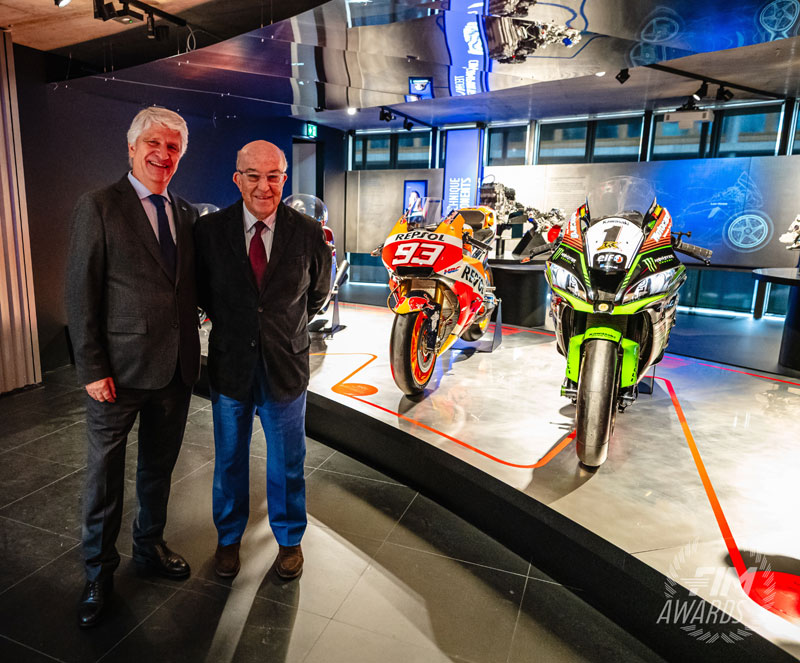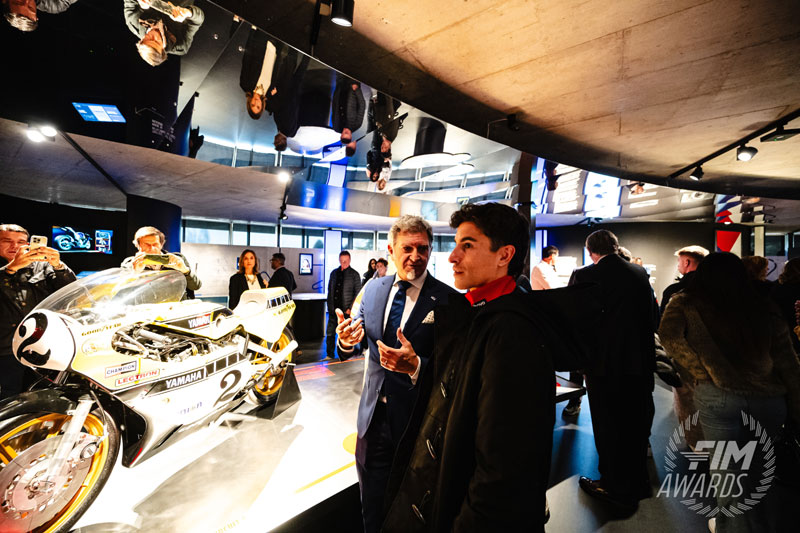 La cérémonie d’inauguration, précédant celle des FIM Awards au SwissTech Convention Center d’Écublens / Lausanne, a débuté par les habituels discours avant la coupe du ruban et l’arrivée sur scène de Giacomo Agostini, 15 fois Champion du Monde FIM en vitesse, Harry Everts, 4 fois Champion du Monde FIM de motocross, la légende FIM du trial et de la vitesse Sammy Miller, ainsi que de Carmelo Ezpeleta, CEO de Dorna, promoteur de la FIM MotoGP™, qui ont chacun reçu l’honneur de devenir les premiers membres du nouveau Hall of Fame de la FIM.