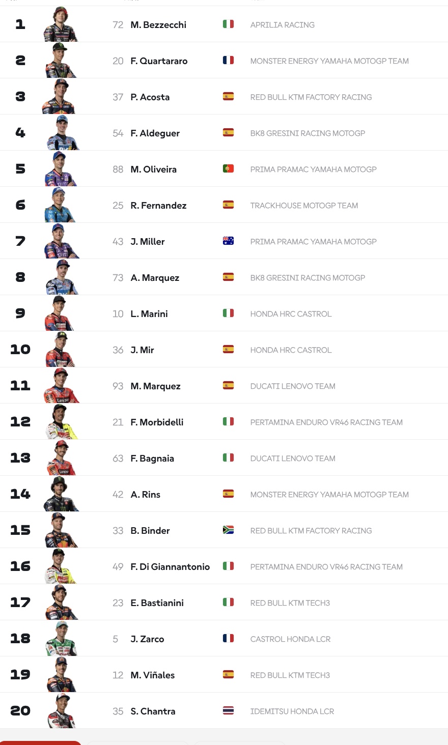 Course | Martin, Acosta, Bagnaia (Voir ici) | (Voir ici) |