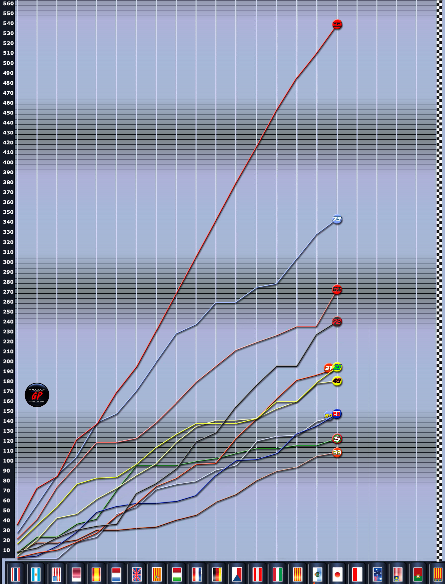 Attention toutefois à Marco Bezzecchi (Aprilia Racing) qui, certes a connu un week-end japonais en demi-teinte, mais ne reste qu’à 32 points derrière le numéro 63.