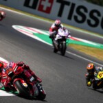 Les deux premières journées aux Mugello nous ont réservé de nombreuses surprises : des améliorations techniques, des casques et des motos ayant une déco spéciale, mais aussi une annonce choc concernant la suite de la saison de Marc Marquez ou encore la pole position surprise de Fabio Di Giannantonio, devant les 2 autres Ducati du team Mooney VR46, avec Marco Bezzecchi suivi de Luca Marini. Les photos mises à disposition de la presse par le site officiel MotoGP.com sont aussi esthétiques que d’habitude et nous permettent de revivre ces 2 premiers jours de fête en Toscane !