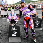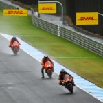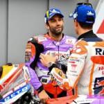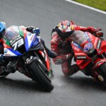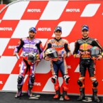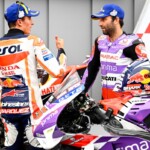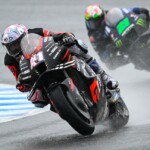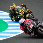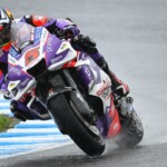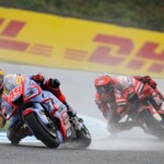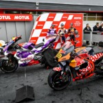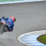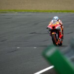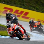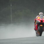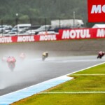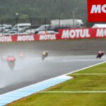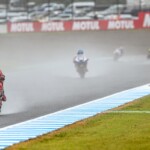 Après une journée de vendredi qui a vu une unique séance FP1 de 75min se dérouler sous le soleil, la journée de samedi a été plus chaotique : drapeau rouge en FP2 puis FP3 annulée en raison de la pluie. En revanche, les qualifications auront bien eu lieu et Marc Márquez aura su profiter de ces conditions pour boucler un chrono en 1’55.214, qui le propulsait en pole. La dernière fois qu’il avait dominé des qualifications, c’était justement au Japon, il y a très exactement 1071 jours ! De quoi ravir ses employeurs ayant fait le déplacement ce week-end. Les photos mises à disposition de la presse par le site officiel MotoGP.com nous permettent de revenir sur les deux journées d’essais du Grand Prix du Japon.