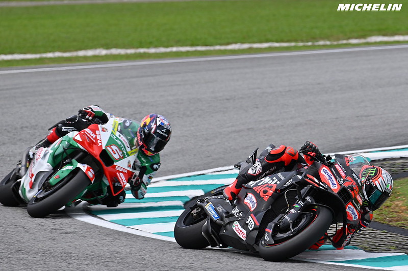Johann Zarco est en feu en Malaisie ! Le Français, qui n’est entré dans le top 10 qu’une seule fois depuis sa deuxième place à Silverstone, a déclaré avoir perdu toute confiance au guidon de la Honda RC213V, pas plus tard… qu’avant-hier. Deux jours après, le voilà qui est deuxième en Practice, à seulement 19 millièmes du leader Pedro Acosta ! Honda fait un joli tir groupé avec deux motos dans le top 5, comme Yamaha. Avec l’absence de plusieurs pilotes clés, les cartes sont rebattues : tous les pilotes peuvent prétendre à quelque chose de grand à Sepang.