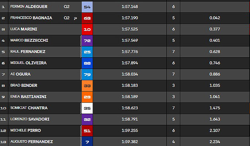 Lors de la Q1, le duo Aldeguer-Bagnaia, déjà aperçu en FP2, a fait parler la poudre, au grand dam de Luca Marini qui, 3e, se voyait renvoyé à une 13e place sur la grille…