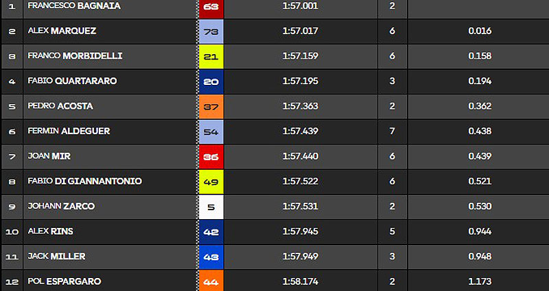 63 DUCATI Francesco BAGNAIA ITA 1’57.001