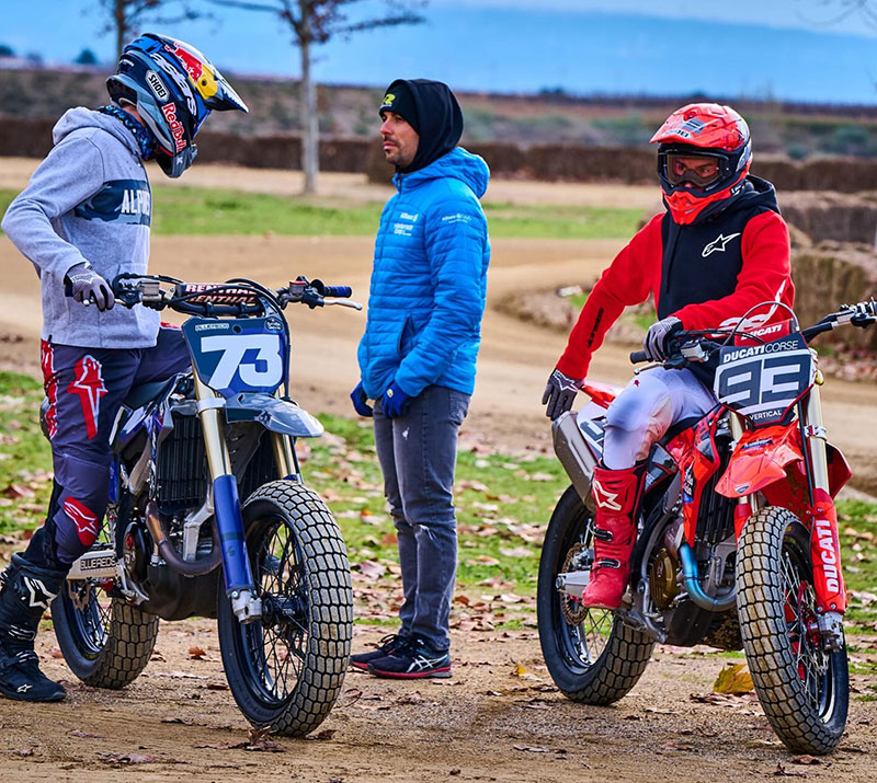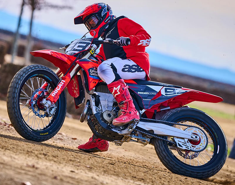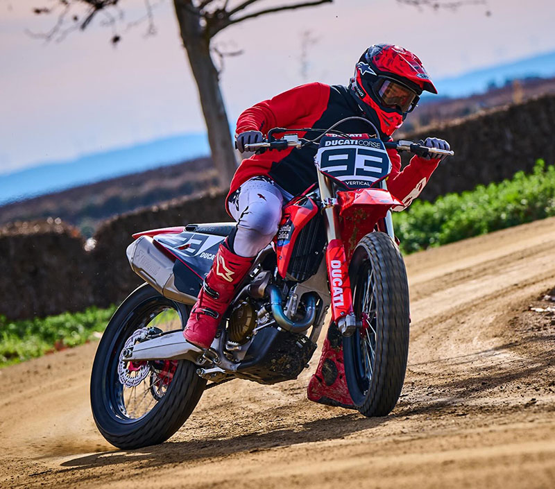 Pour cette reprise, pas question de MotoGP. Le Catalan a choisi une approche prudente en optant pour le flat-track, discipline idéale pour retrouver des sensations de pilotage tout en limitant les contraintes physiques. Il a ainsi roulé sur une Ducati Desmo450 MX, machine de tout-terrain développée par Ducati, permettant de travailler le contrôle de la glisse et la coordination sans subir les violentes forces d’une Desmosedici sur l’asphalte.