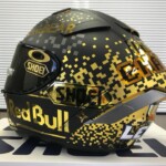 Voici en détail le casque Shoei commémorant le 5e titre mondial de Marc Márquez en MotoGP, son 7e en carrière.