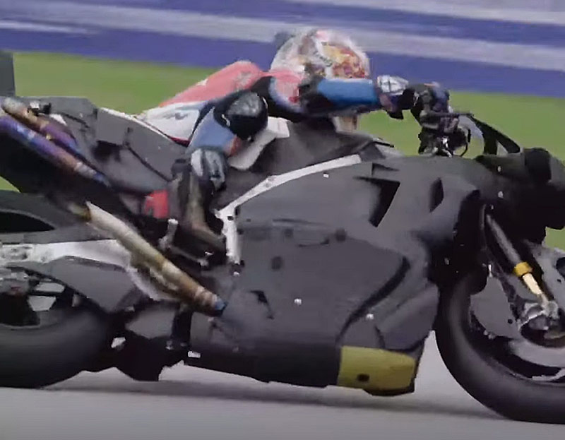 Dans celle-ci, on peut néanmoins constater que les premiers essais ont dû se faire en montant un moteur 850cc dans un châssis 2026, comme en témoigne tous les appendices aérodynamiques qui ne seront plus réglementaires en 2027 (ailerons de carénages trop larges, ailerons de selle trop hauts, etc.)