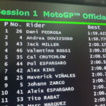 C’est donc sous un soleil engendrant une température de 30° que Valentino Rossi a posé un premier jalon vers 14h30 avant d’être dépassé par son propre coéquipier Maverick Vinales, alors le plus assidu en piste, puis par Andrea Dovizioso qui avait passé toute la matinée dans son box, ne souhaitant prendre aucun risque sur un revêtement mouillé.