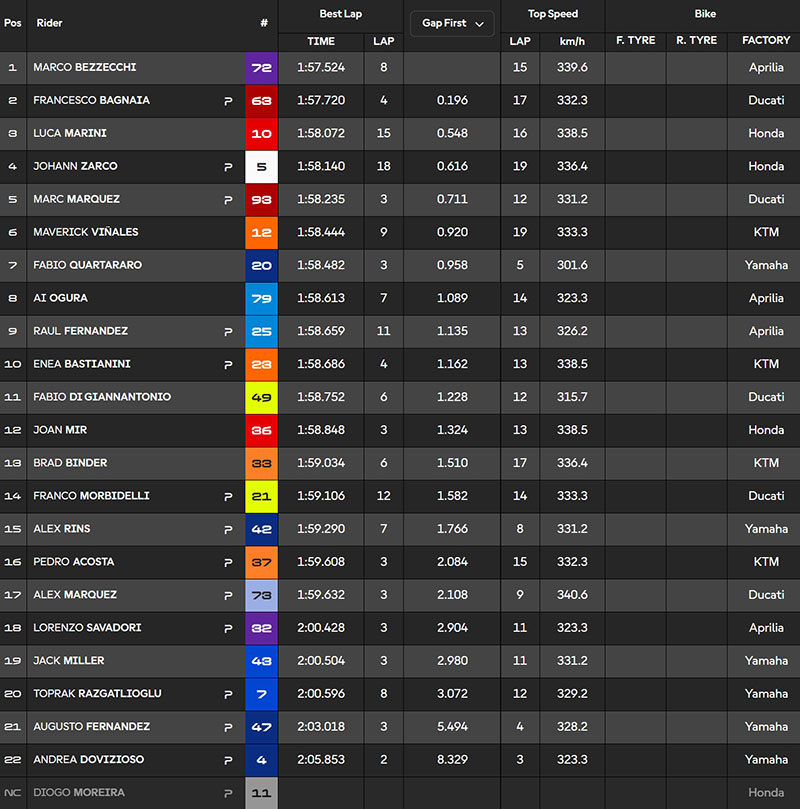 Autre fait marquant, Toprak Razgatlioglu (Prima Pramac Yamaha MotoGP) a progressé sensiblement au fil des journées. Mais c’est le rookie Diogo Moreira (Pro Honda LCR) qui a été le meilleur débutant du Shakedown, devançant le pilote turc lors de la troisième journée.