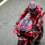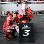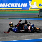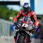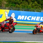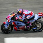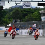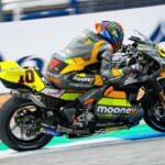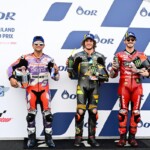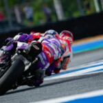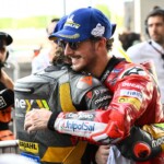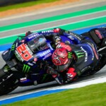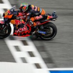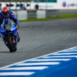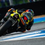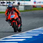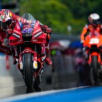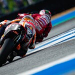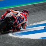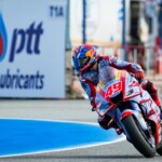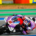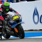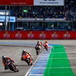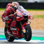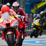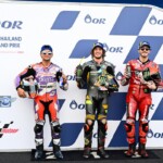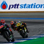 Marco Bezzecchi s’était déjà hissé en première ligne sur ses terres, mais ce samedi le rookie aura fait encore plus fort, en privant Jorge Martín de la pole pour 21 millièmes. L’Italien, qui battait au passage le précédent record du circuit, ouvrait ainsi son compteur. Francesco Bagnaia, relégué à un dixième de ce tour en 1’29.671 établi par son compatriote, les accompagnera sur cette première ligne 100% Ducati. La marque de Bologne pouvait à vrai dire d’autant plus se réjouir que six de ses représentants figuraient parmi les sept premiers : Johann Zarco, Enea Bastianini et Jack Miller héritaient en effet des cinquième, sixième et septième places. Seul pilote à être parvenu à s’intercaler… un certain Fabio Quartararo, qui se voyait donc crédité de la quatrième position. Les photos mises à disposition de la presse par le site officiel MotoGP.com nous permettent de revenir sur les deux journées d’essais du Grand Prix de Thailande.