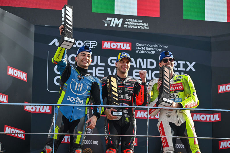 La conférence de presse au terme du Grand Prix MotoGP de la communauté valencienne 2025 a réuni à Valence Marco Bezzecchi (Aprilia Racing), Raul Fernandez (Trackhouse MotoGP Team) et Fabio Di Giannantonio ( Pertamina Enduro VR46 Racing Team) pour leur débriefing d’après course.