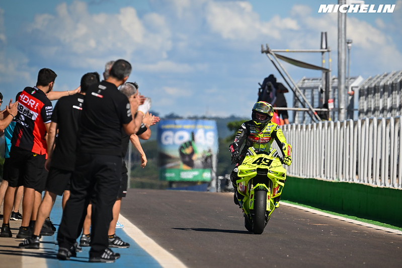 Ça faisait longtemps qu’on ne l’avait pas vu comme ça. Bon, en Thaïlande, il aurait pu être également très rapide le samedi, mais Alex Marquez l’a – encore – percuté au deuxième virage, ruinant ainsi son Sprint. Puis, le dimanche, il n’avait pas été ridicule, sans jouer devant pour autant. Là, ça n’avait plus rien à voir. Fabio Di Giannantonio a pris la pole de manière autoritaire au Brésil, alors qu’il était très facile de tomber sur l’asphalte morcelé de Goiânia. C’est sa deuxième en MotoGP, la première datant du Grand Prix d’Italie 2022, alors réalisée sous la pluie.