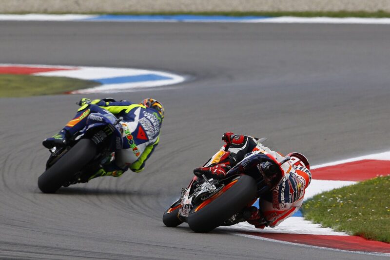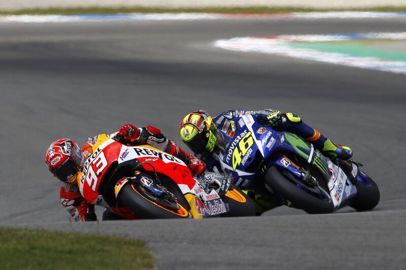 Il faut savoir que Marc Marquez, adoubé (pour de vrai ou pour de faux) par Valentino Rossi à ses débuts en MotoGP, s’était déjà accroché plusieurs fois avec « The Doctor » lors de cet exercice. Il s’est fait faucher à Termas de Rio Hondo, et a tenté de le dépasser de manière musclée à Assen, dans le dernier virage.