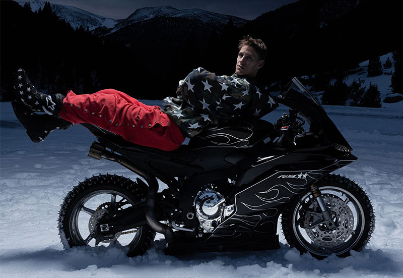 Adoptant une approche différente de sa fonction d’origine, la marque contemporaine de bijoux lifestyle a voulu placer la moto dans un autre contexte, en transformant la neige en piste de course grâce à l’ajout de clous dans les pneus.