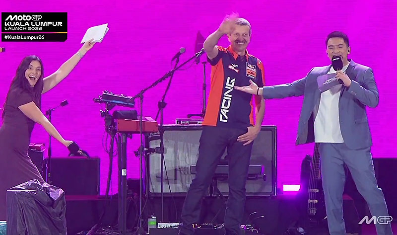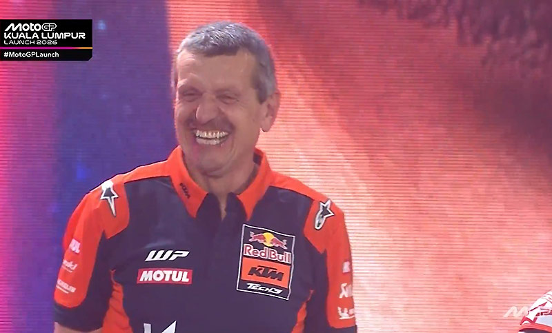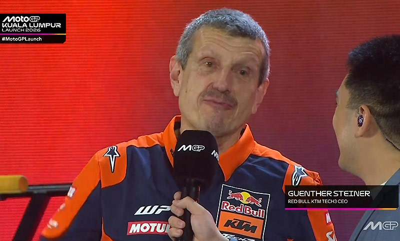 Lors de la pluvieuse mais très belle présentation officielle des MotoGP à Kuala Lumpur, nous avons pu apercevoir pour la première fois Günther Steiner habillé aux couleurs du team jadis français Red Bull KTM Tech3.