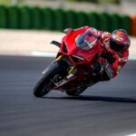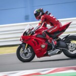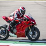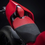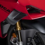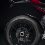 Avec son V4 Desmosedici Twin Pulse à 90° de 1103 cc qui développe 215 ch à 13 000 tr/min, un vilebrequin contre-rotatif, une boite de vitesse qui reprend l’étagement de celle de la V4 R de Superbike, les contrôles de traction, de glisse, du frein moteur et du wheeling, une ligne titane Akrapovic, un shifter bidirectionnel, des freins Brembo Stylema, des ailerons apportant 37 kg d’appui à 300 km/h et quelques autres friandises que l’on peut compléter par la version S dotée de jantes en aluminium forgées, d’une batterie Lithium et de suspensions semi-actives Öhlins Smart EC 2.0, la dernière production de Borgo Panigale n’est pas bien loin d’une Superbike adaptée à la route !