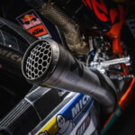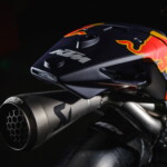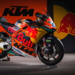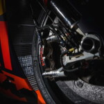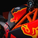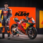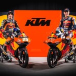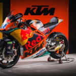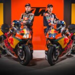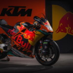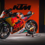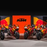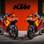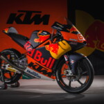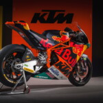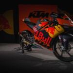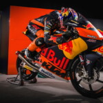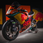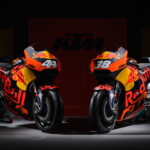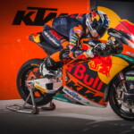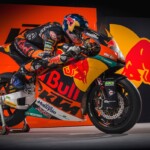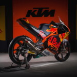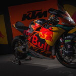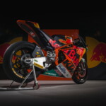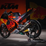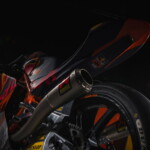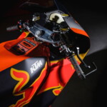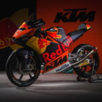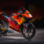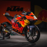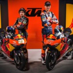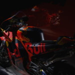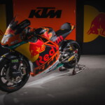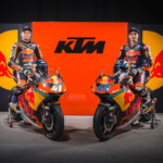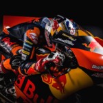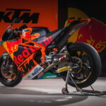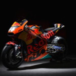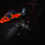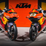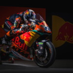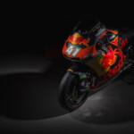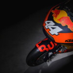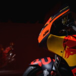 Contrairement à ses concurrents, c’est dans une atmosphère sombre que KTM a choisi pour mettre en valeur les motos de Pol Espargaro et Bradley Smith, mais également celles des pilotes Moto2 Brad Binder et Miguel Oliveira, ainsi que ceux représentant la marque en Moto3, Niccolo Antonelli et Bo Bendsneyder.