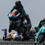 Aussi spectaculaire qu’elle soit, la chute de s’arrête malheureusement pas là. On découvre John Mc Phee inanimé tandis que Enea Bastianini continue à glisser  dans la trajectoire de Jorge Navarro