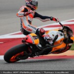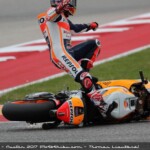 En l’absence de notre photographe habituel, c’est Thomas Liautard, qui officie pour le site Mototribu.com, qui a su capter la deuxième chute de Marc Márquez lors de la FP3.