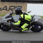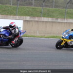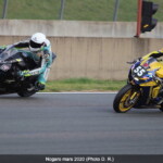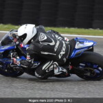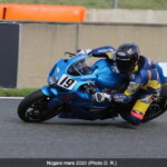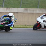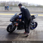 Valentin Debise : « C’est un roulage organisé par Twist Ring Racing, dont le patron, Pablo, est d’origine allemande, comme son prénom ne l’indique pas. Vu qu’il n’y a pas d’essais pré-saison pour le championnat de France, contrairement à ce qui se passe en MotoGP, il organise maintenant ce roulage chaque année et cela s’est progressivement imposé comme une référence. Pour cela, il y a une sélection avec un certain chrono obligatoire, et le résultat est qu’il n’y a que des équipes de course et des pilotes de course, avec seulement des grosses motos puisque c’est interdit aux 300cc. À Nogaro, les pilotes étaient tellement nombreux qu’il a fallu les séparer en deux groupes, le vert pour les plus rapides et le jaune pour les un peu moins rapides. Grosso modo, pour vous donner une idée, le groupe vert correspondait à du FSBK , avec, que ce soit en 600cc ou en 1000cc, les meilleurs pilotes du championnat, et le groupe jaune à du Promosport. Ce qui est bien, c’est qu’il y a les transpondeurs sur les motos, et c’est donc la première confrontation entre les pilotes de l’année. C’est donc intéressant de s’y rendre car avant cela tout le monde à plus ou moins roulé dans son coin à droite ou à gauche, mais se retrouver tous ensemble à Nogaro permet de se calibrer les uns par rapport aux autres. Même si je faisais pas le championnat de France ces dernières années, je m’y suis toujours rendu pour se remettre un peu dans le rythme, se tirer la bourre avec les copains et voir où on n’en est. »