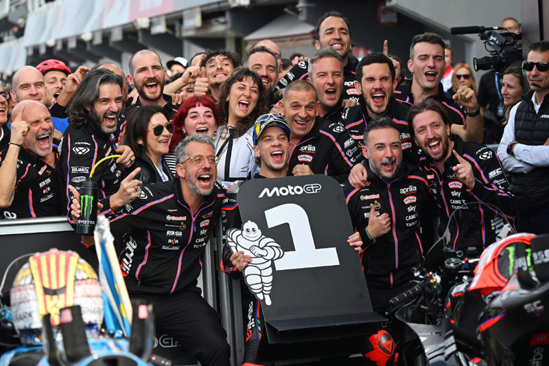 Symbole de cette précision extrême, le Circuit Ricardo Tormo de Valence a une nouvelle fois servi de terrain d’expression aux performances des pilotes et des pneumatiques. Au cours de ce week-end de novembre, son record absolu a été battu par cinq pilotes, leurs chronos se tenant dans une marge infime de seulement 96 centièmes. En tête, Marco Bezzecchi (Aprilia Racing) signe la nouvelle référence en 1’28.809.