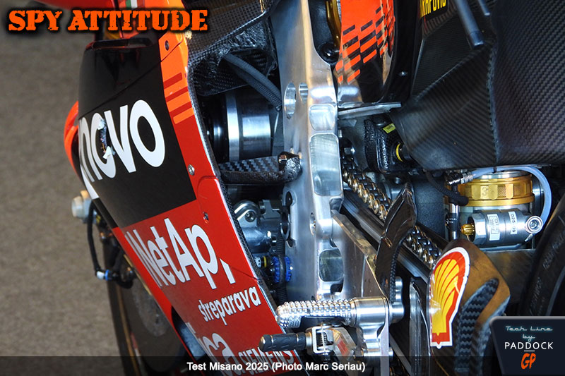 Bien sûr, il s’agit d’une pièce extérieure au moteur scellé et, en théorie, on peut en faire varier ses dimensions et sa masse pour influencer le comportement du moteur. Mais à Misano, toutes les GP25 en avaient un de taille réduite par rapport aux GP24…