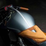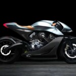 Apprécions donc simplement cet exercice basé sur un moteur porteur V-Twin 997 cm3 turbo de 180 chevaux fournis par Brough Superior, un « squelette » usiné par commande numérique avec un sous-châssis arrière en fibre de carbone et des « interfaces en titane ». Le bras oscillant usiné par commande numérique présente une très jolie courbe et la suspension avant Fior est assuré par une fourche en aluminium à double triangulation avec un amortisseur monobloc derrière le carénage avant.
