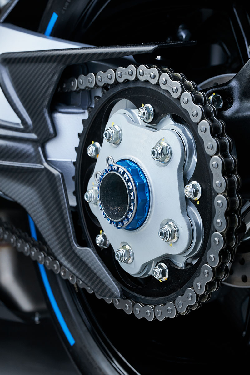 L’ensemble est complété par l’introduction de vis en titane, utilisées sur tous les composants en titane ainsi que sur le garde-boue avant. Discrètes mais essentielles, elles témoignent de l’obsession du détail propre à MV Agusta, garantissant cohérence des matériaux, réduction de poids et finition haut de gamme jusque dans les moindres éléments.