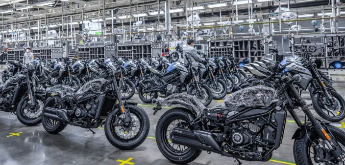 Plus de 400 motos assemblées par jour, robots autonomes pour transporter cadres et moteurs, postes mobiles, opérateurs qui s’adaptent au produit — pas l’inverse.